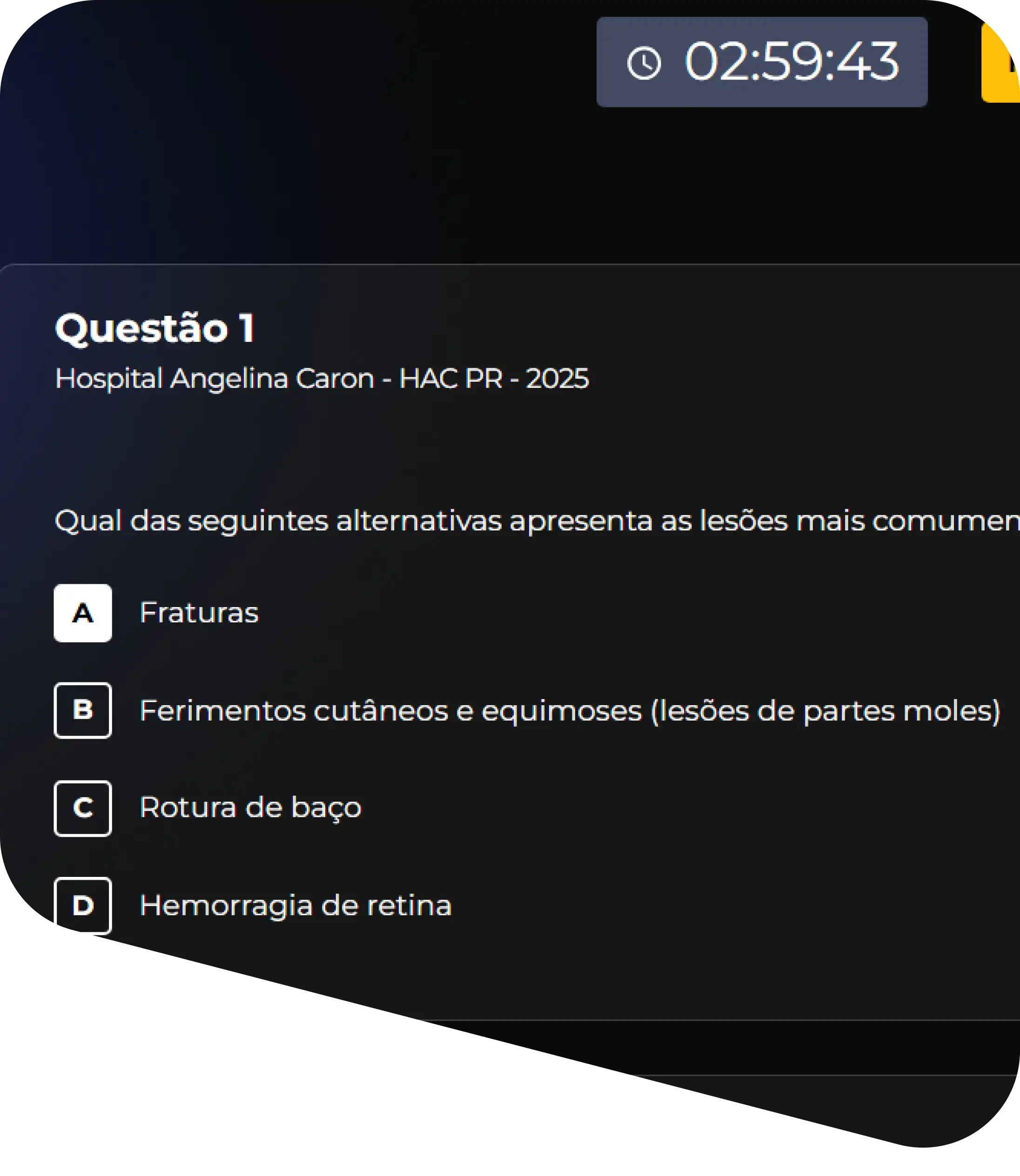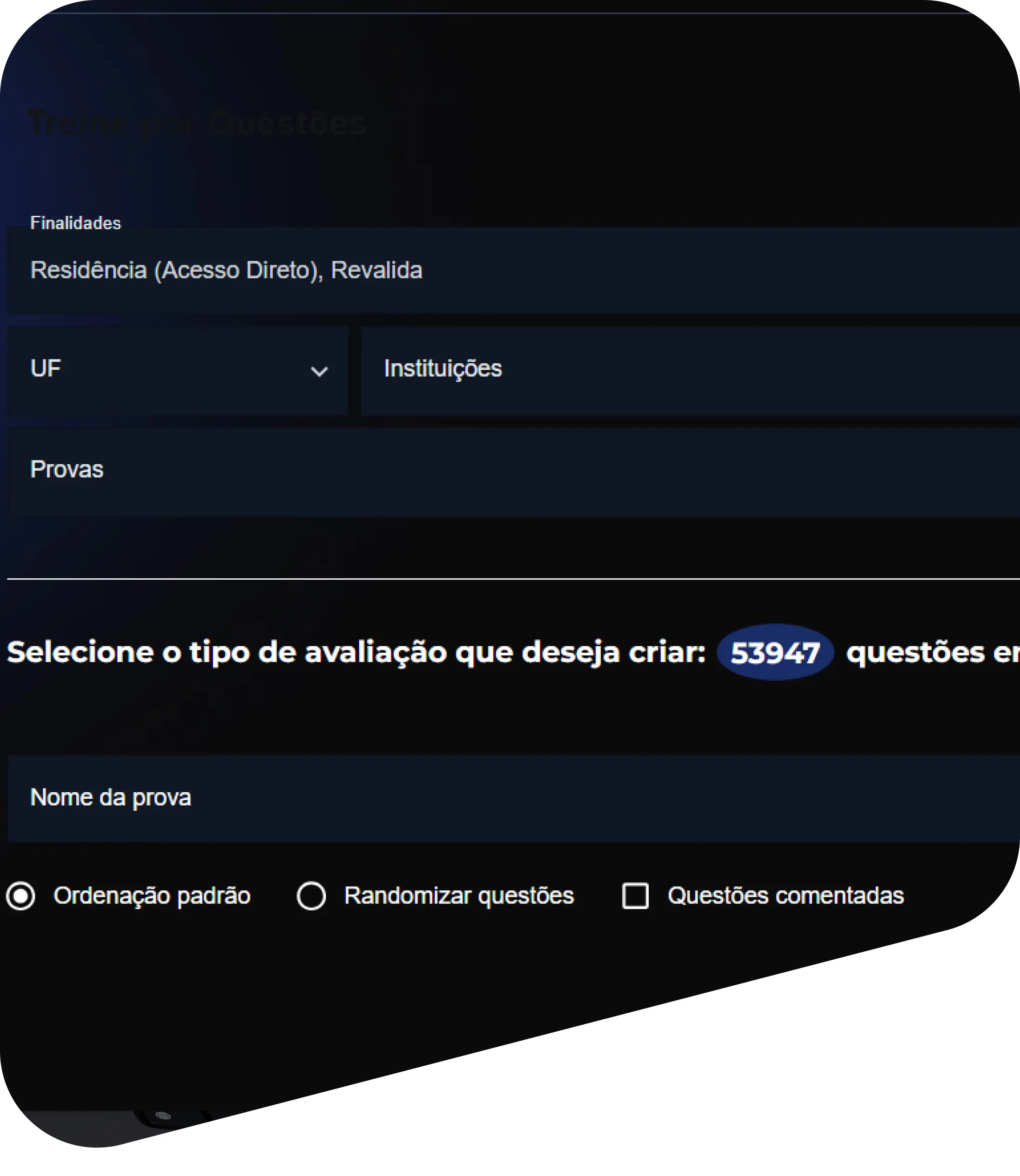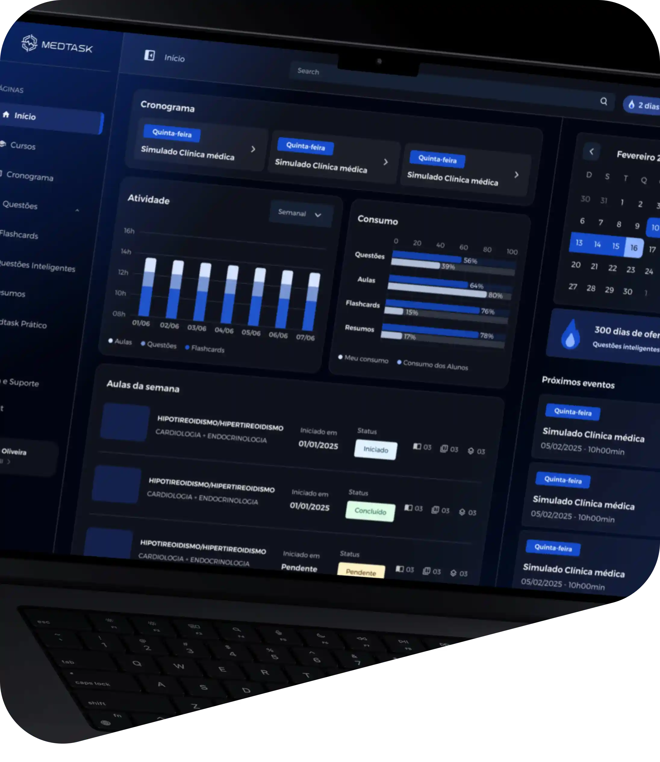 Com mais de 60.000 questões comentadas, o Banco de Questões MEDTASK é a ferramenta definitiva para quem quer dominar a prova do Revalida. Aqui, a prática vai além da repetição: você estuda com inteligência, avalia seu desempenho e evolui em tempo real com tecnologia exclusiva.